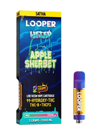 - Lifted Series Exclusive: Apple Sherbet Looper Carts 2G belongs to the Lifted Series, offering an innovative and enhanced vaping experience crafted for true cannabis enthusiasts.