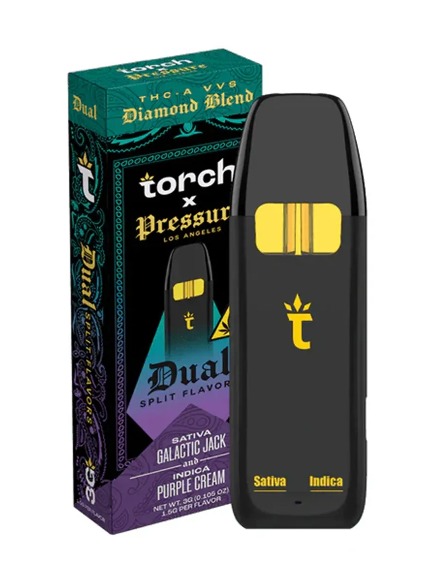 + Free ShippingEnjoy twice the flavor with the Galactic Jack | Purple Cream Dual Disposable by Torch x Pressure. This premium 3G diamond-infused vape brings you the uplifting notes of Galactic Jack and the smooth, creamy finish of Purple Cream—all in one sleek, high-performing device.