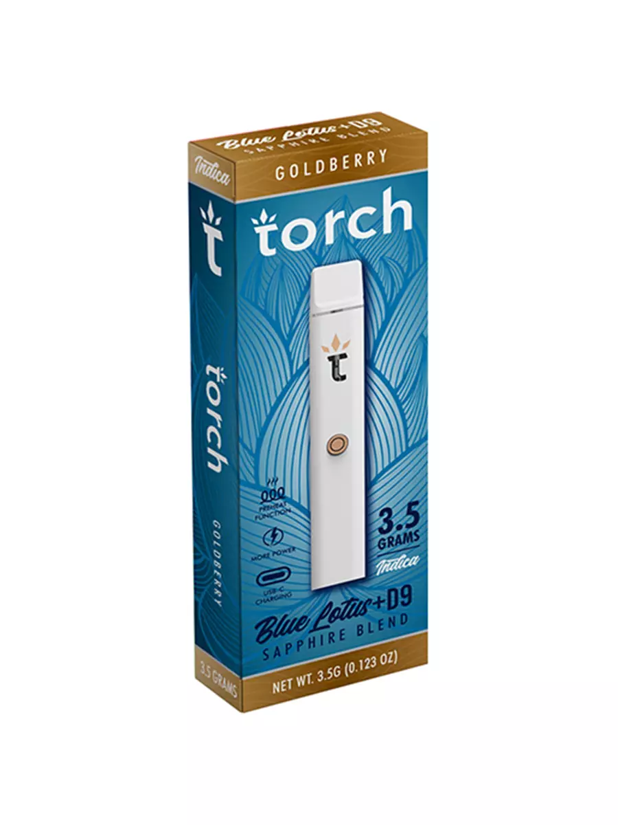goldberry torch blue lotus + d9 sapphire disposable 3.5gGoldberry Torch Blue Lotus + D9 Sapphire Disposable 3.5G