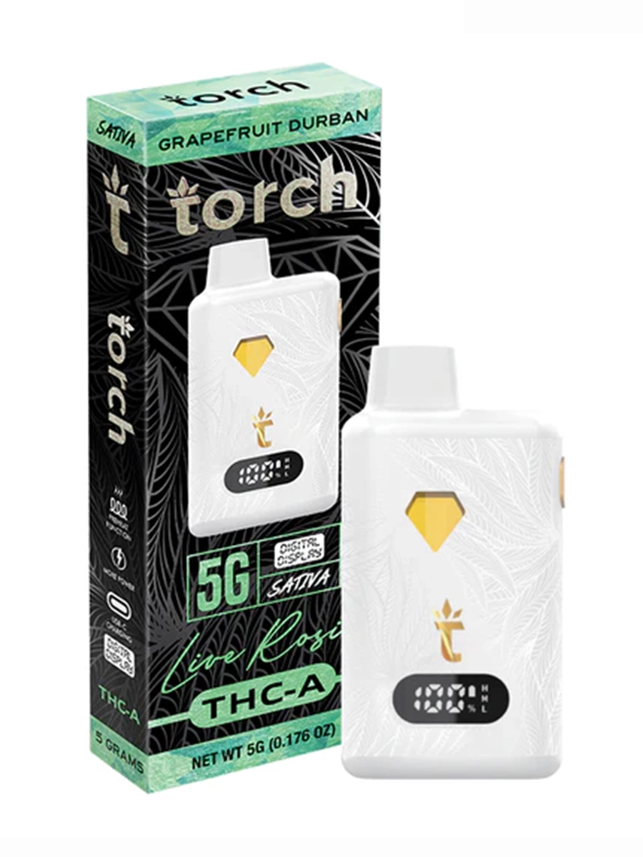 Elevate your cannabis journey with the Grapefruit Durban Torch Live Rosin THC-A Disposable—a flavorful adventure that invites you to savor the sophisticated side of cannabis enjoyment. Order now from our online shop and experience next-level vaping!