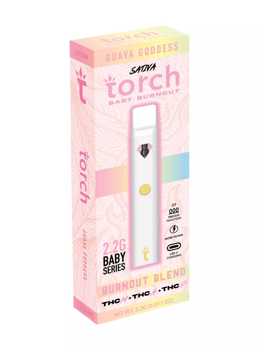 Here are the key features of the Guava Goddess Torch Baby Burnout Blend Vape 2.2G: