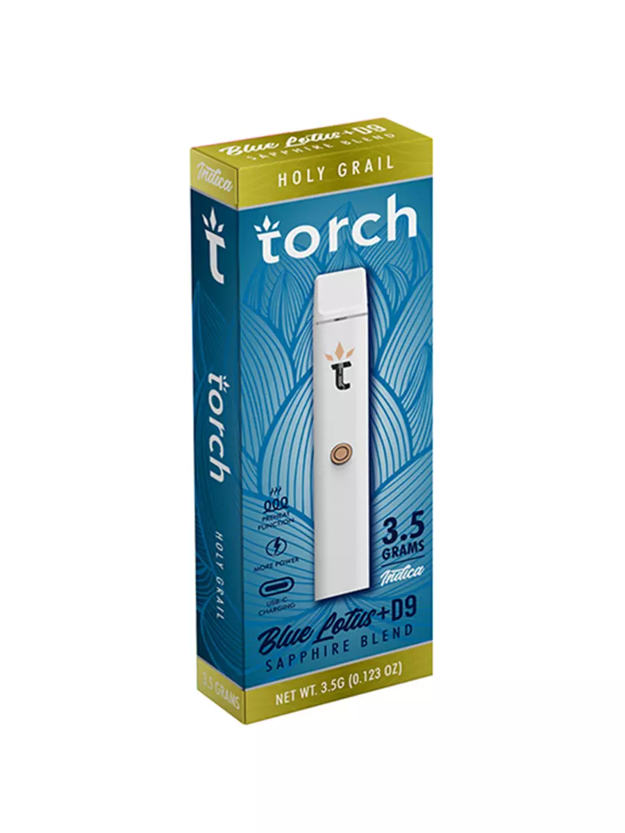 Elevate your vaping experience with the Holy Grail Torch Blue Lotus + D9 Sapphire Disposable 3.5G. Indulge in the harmonious blend of Blue Lotus and D9, savoring each puff as you immerse yourself in this magical combination.