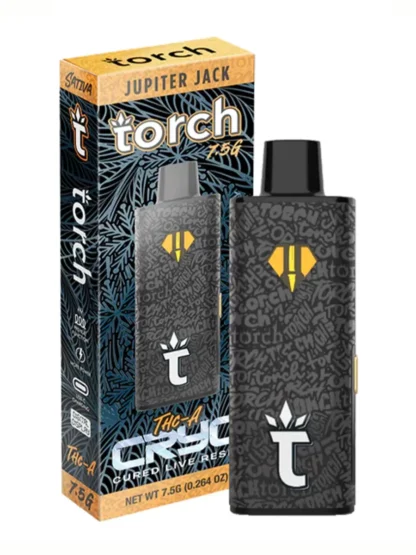 Jupiter Jack Torch CRYO THC-A Cured Live Resin Vape 7.5g offers a rich, earthy flavor that appeals to cannabis enthusiasts. Packed with 7.5 grams of premium THC-A live resin, it provides a powerful and consistent experience. Perfect for those who enjoy bold, full-bodied flavors, it delivers a smooth and relaxing session. The convenient, disposable design ensures ease of use, making it ideal for vaping on the go.